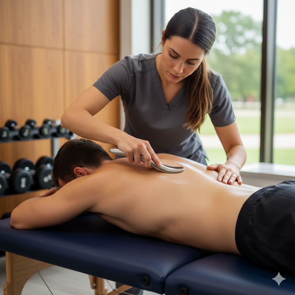 Instrument Assisted Soft Tissue Mobilization (IASTM) is a manual therapy technique that uses stainless steel tools to release tight muscles, break down scar tissue, and improve mobility.
